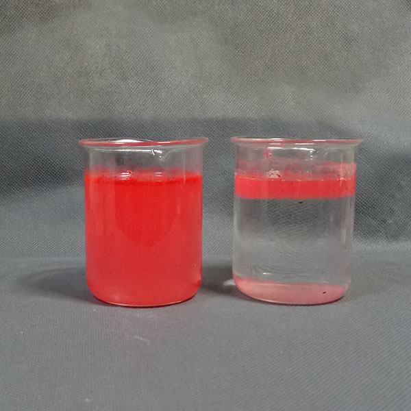 漆雾凝聚剂B剂为凝聚、悬浮的作用,能够对已经被A剂分解的油漆渣和漆渣之间连接起来,较为快速的凝聚悬浮在循环水的表面上,将漆渣颗粒进行凝聚成大块,形成较大的漆渣絮状物质并且上浮,产生固液分离的效果,保持循环水干净,从而延长循环水的使用周期。